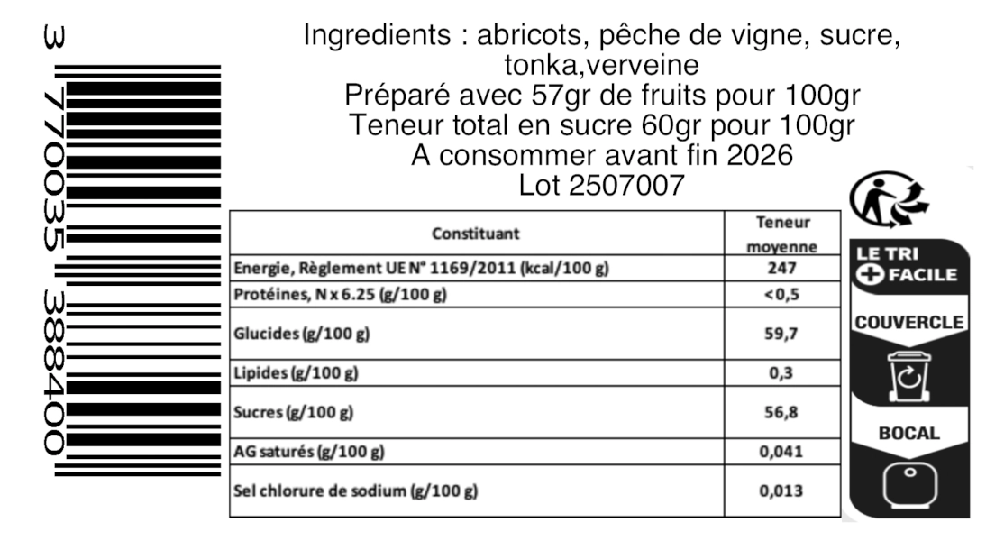 1 avis pour Confiture artisanale abricot pêche de vigne tonka verveine