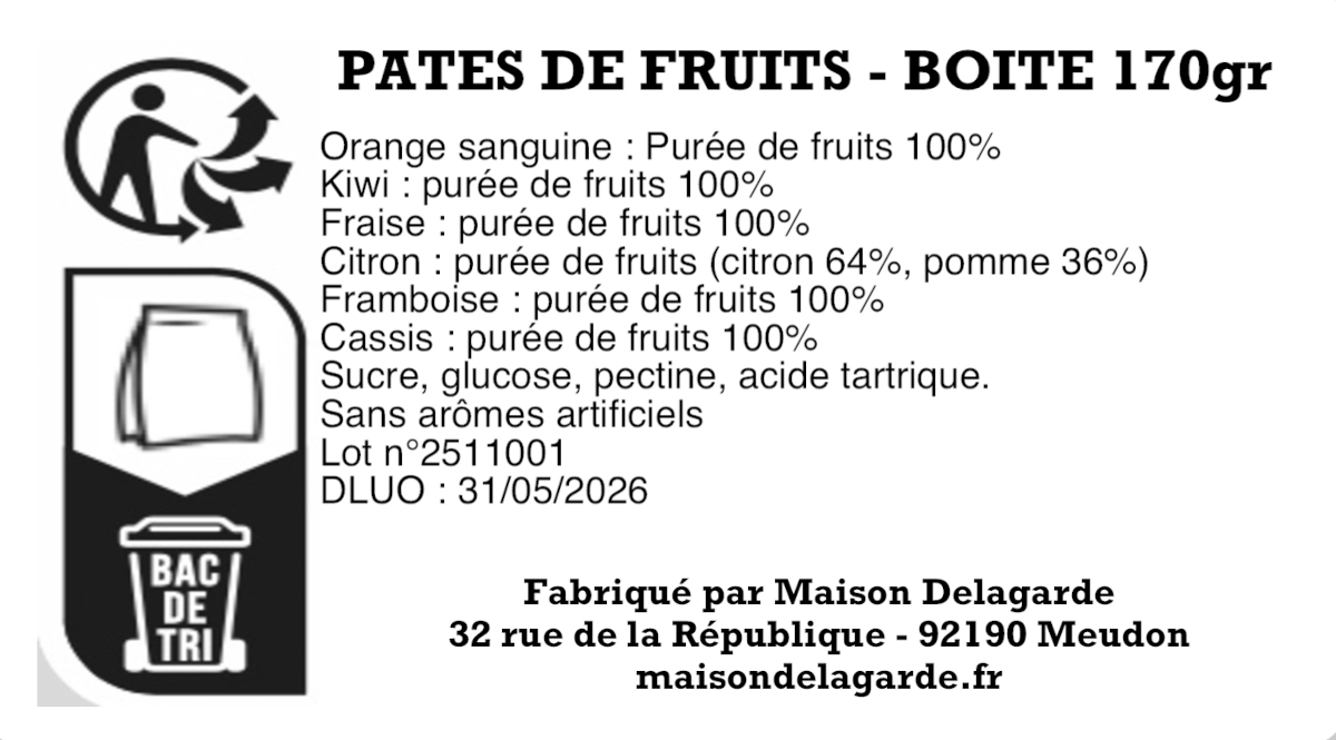 Préparées selon un savoir-faire artisanal à Meudon, dans notre atelier à taille humaine, ces pâtes respectent la nature des fruits et offrent une expérience sucrée équilibrée et raffinée, fidèle à l’excellence de Maison Delagarde.
